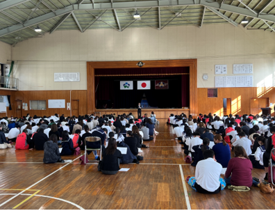 4校時に修学旅行の事前指導と出発式を体育館で行いました。本校の2年生は、明日から2泊3日の行程で関西方面の修学旅行を行います。1日めは関西万博と奈良(文化財)の2コースに分かれて研修をします。2日目は各グループに分かれての京都自主研修、そして3日目はUSJでの体験となっています。出発式では、校長先生や学年主任の栁田先生からのお話や、実行委員長のあいさつがありました。明日からの修学旅行が良い天気に恵まれ、楽しく実り多い旅行となることを祈っています。