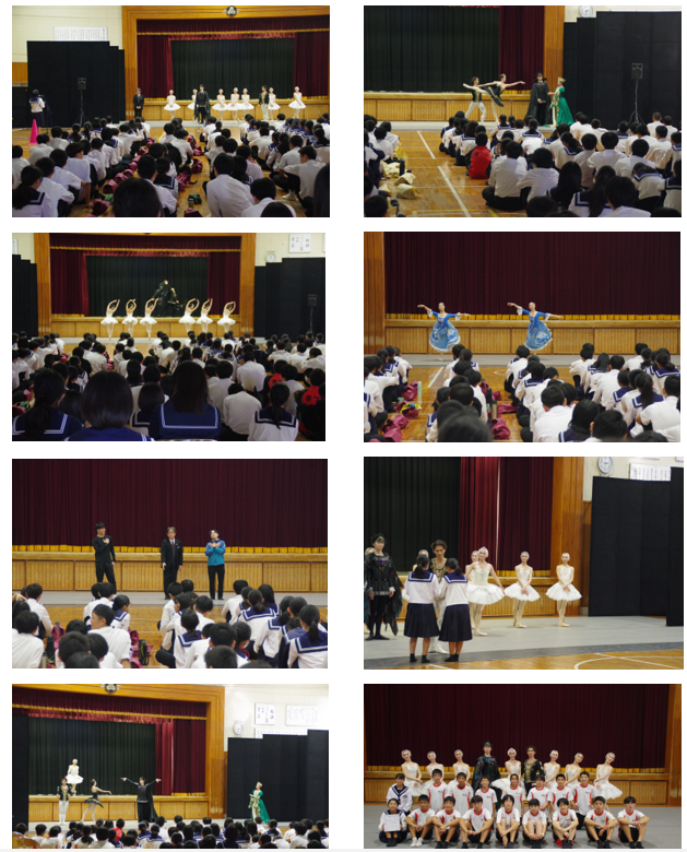 本日は令和6年度文化庁舞台芸術等学校巡回公演として、東京からバレエシャンブルウエストの皆様をお迎えして、午前は3年生にバレエの歴史からどんな稽古を毎日休まずに行っているのかを見せていただき午後は9月の事前ワークショップを受けた1、2年生がバレエダンサーの皆さんと一緒にくるみ割り人形を踊るワークショップを行うなどして、バレエ白鳥の湖を鑑賞しました。早朝からの準備、設営、2部公演と、本物のバレエを見て学ぶ機会を与えてくださったことに感謝いたします。