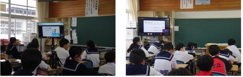 本日午後は、1年生は体育館にて学校保健委員会、被服室では情報教育部会の研究授業が行われました。学校保健委員会では、助産師の上原えり子様をお迎えして、思春期の二次性徴についてのお話をしていただきました。情報教育部会では物体の移動についてICTを活用して子どもたちが主体的・協働的に課題解決に向かう理科の研究授業を都北地区の情報教育担当の先生方にご参観いただきました。