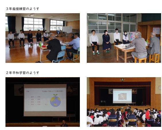 3年生は妻ケ丘地区まちづくり協議会の皆様のご協力を得て、面接練習を行いました。たいへん緊張したようすで質問に受け答えする姿から、いよいよ受験が近づいてきているという印象を受けました。2年生は長崎での平和学習に向けた事前学習を行いました。1年生はSDGsについて、自分たちが選んだ目標を達成するために自分たちができることを提案するプレゼン作成を行っていました。