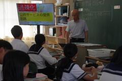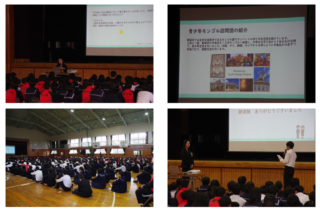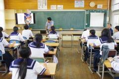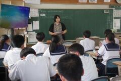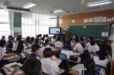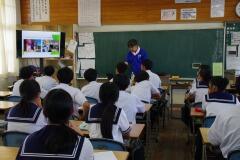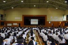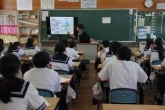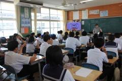 今回の参観日では、2・3年生は参観授業を実施しました。1年生については、生徒と保護者の皆さんと一緒に、修学旅行説明会と子宮頸がんに関する講話を行いました。修学旅行説明会では、日程等について旅行会社の方にも来ていただき、くわしく説明をさせていただきました。子宮頸がんに関する講話では、宮崎大学医学部から先生をお招きして、現状や対策等について専門的な話をしていただきました。将来に関わる大切な話を真剣に受け止めている1年生の姿がありました。