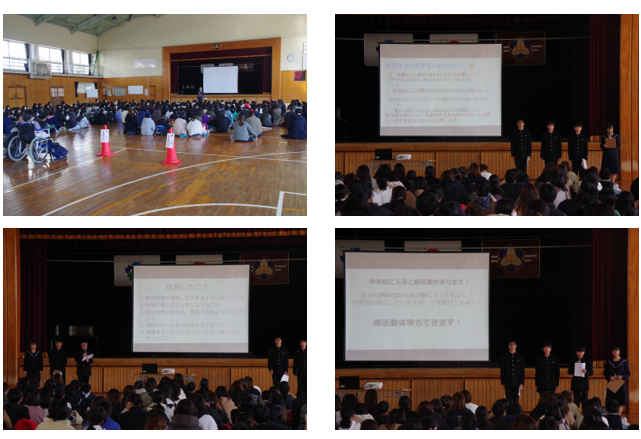 本日の5・6校時は、県中体連推戴式と生徒会任免式でした。県大会に出場する部活動のキャプテンからの決意表明の後、教頭先生、全校保体副委員長からの激励の言葉、選手を代表して柔道部主将による選手宣誓がありました。また、部活動担当の矢野先生から、選手および応援に行く生徒に向けての注意事項がありました。都城地区の代表として、ベストを尽くしてくれるものと期待しております。