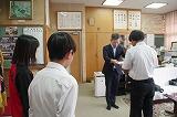 学生さんを代表してシージェイ・ミュラーさんとエリン・シュマーさんが日本語であいさつをされました。日本各地をめぐり、広島の宮島などに感動したこと、都城でホストファミリーの家庭に宿泊し、本校で学校生活を体験するのをとても楽しみにしていることなどを話されました。