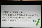 今日の午後は生徒総会でした。議長団の選出の後、今年度の生徒会スローガン、専門委員会取組目標、会計報告・予算案の承認がありました。休憩をはさんで、中心議題である「タブレットの使い方を見直し、学校生活を充実させる」について、意見交換を行いました。各学級で委員長を中心に意見を集約したり、全体で自分の意見を発表したりと、活発な生徒総会となりました。生徒会役員のみなさん、準備・運営をお疲れ様でした。