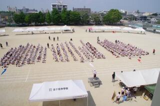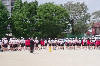 夏を思わせる天気の中、本校の体育大会予行が実施されました。開会式に続いて、各学年の学級対抗リレー、各学年の団技を中心に競技が行われました。応援では各団が暑さに負けないパフォーマンスを披露していました。誰もが真剣に競技や応援に取り組む姿に、妻ケ丘中学校のすばらしさが表れていました。17日(土)の体育大会本番に向けて、大いに盛り上がった1日でした!