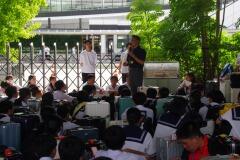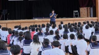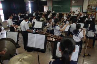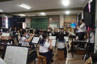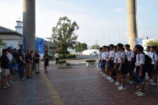 生徒会長の吉留さんの英語でのあいさつのあと、吹奏楽部による2曲の演奏を聴いていただきました。コロナ禍の影響で6年ぶりに復活した交流です。日本に関心が高く、日本の文化を学んで帰りたいとの希望を持って来校されています。本校の子どもたちにとっても大変貴重な機会です。