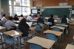 本校の今年の主題研究のテーマは、『主体的に自分の考えを伝え、共に学び合う児童・生徒の育成』~子どもたちの主体性を引き出す授業と集団づくりを通して~ です。今回は、心理的安全性の担保を目的に研究を進める集団づくりチームの中から、栁田先生が研究授業を行い、全職員で授業を参観しました。GWT(グループワークトレーニング)の活動を通して、それぞれの生徒が振り返りをしながら、協力することの意義を考える道徳の授業実践となりました。