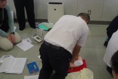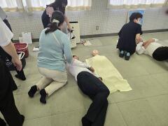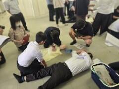 今回の職員研修では、午前中にコンプライアンス研修、命を守るゲートキーパー研修、保健研修を行いました。保健研修では、生徒がアレルギー症状を起こした場合の対応について、下の写真のように、学校薬剤師の講義を受けた後に想定訓練を行いました。午後は、教育長スクールミーティングが行われ、「生徒が主役の授業」の構築に向けて、教育長よりご講話をいただきました。2学期に向けて、さらなる授業改善に取り組んでいきます。