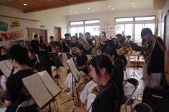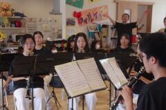 本校吹奏楽部が、7日(木)の午前中にフォルケ・フォイスコーレ児童クラブ早鈴若葉で地域演奏を行いました。披露した曲目は、子ども達にもおなじみの「ジャンボリミッキー」、「名探偵コナンのテーマ」など、アンコールも含めて全5曲。ジャンボリミッキーの演奏前には、子ども達と一緒にダンスの練習をして、本番で中学生をお手本に踊るなど、楽しい交流がありました。子ども達の笑顔を見た吹奏楽部の生徒にとっても、とても素敵な時間となりました。
