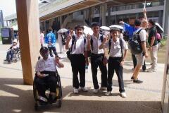 2泊3日の修学旅行の全行程をみんなそろって終えることができました。帰りのバスは早水体育公園文化センターに到着しました。充実した修学旅行を終え、ほっとした表情でそれぞれの生徒が帰路についていました。それも妻ケ丘中の2年生の生徒、そして引率した職員の団結あってのことだと思います。修学旅行を通して大きく成長した2年生が、今後さらに活躍することを楽しみにしています。修学旅行の写真につきましては、後日このトップページにアップいたします。