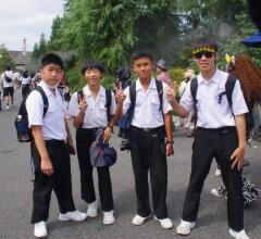 20日に行われた馬頭観音大祭に、約50名の妻ケ丘中学校の生徒がボランティアとして参加しました。午前中はステージ発表のリハーサル、午後の始めはテント設営や使用する道具運搬などの会場準備を行いました。祭りの開始後は、司会、交通整理、チップス販売コーナー、魚のつかみ取りコーナー、かき氷コーナー、ジュース販売コーナーなど様々な役割に分かれて活動しました。途中で雨が降る状況がありましたが、地域の祭りを盛り上げようと元気いっぱい活動した妻ケ丘中生でした。
