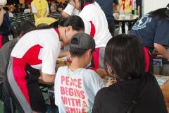 イベント当日は、あいにくの雨で心配されましたが、多くの親子連れが訪れ、大いに盛り上がりました。生徒は笑顔で小さなこどもさんの体験をやさしくサポートするなど積極的に関わりました。