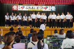 前日の準備に続き、本日はまちづくり協議会の皆さんと、本校の生徒会が共に企画・運営して、ふれあい祭りが盛大に実施されました。舞台・演芸コーナーでは、本校からは2年生2クラス(3組・5組)の合唱、生徒会による寸劇、バンド演奏、女子ソフトテニス部によるダンス、吹奏楽部による演奏が行われました。展示コーナーでは美術部の作品展示、さらに体験・工作コーナーでは本校の「ものづくり同好会」によるロボット製作講座もありました。販売コーナーでは生徒会がかき氷の販売を行い、用意していたカップで足りずに追加するほどの大盛況でした。今回の祭りでは、多くの本校生徒がボランティアとして、受付や各コーナーの運営に携わりました。地域を盛り上げようと関わった生徒のみなさん、ありがとうございました。