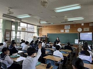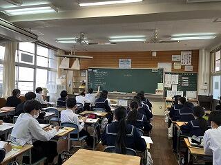 7月5日(水)5校時には、今年度最初の研究授業が2年3組(英語)と3年3組(国語)で行われました。その他の学級は、生徒会執行部とUCTメンバーによる巡回や下級生へのサポートを行う自学自習の時間を合わせて、本校では学力向上タイムと呼んでいます。1年生は、総合的な学習の時間に係るプレゼン出前講座を行いました。研究授業後には事後研究会を学年ごとに行い、同じ教科の先生方だけでなく、違う教科の先生方からのご意見や質問もあり、教科横断的な視点から研修が進められております。