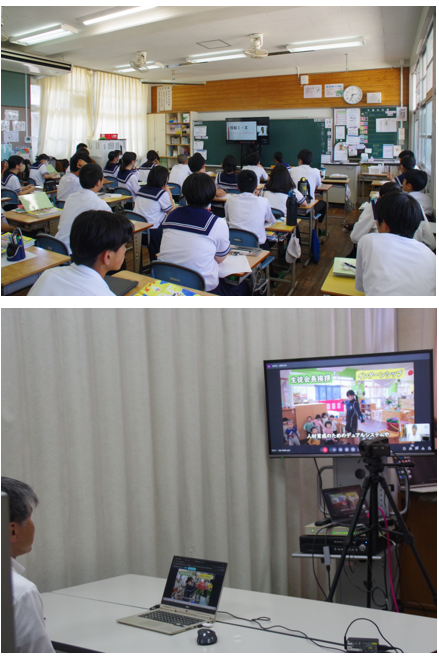 また、当日朝の判断になりましたが、熱中症対策として体育館での実施を取り止め、3年生は各教室で、保護者の皆さんは被服室と調理室にてオンラインによる説明をご視聴いただきました。