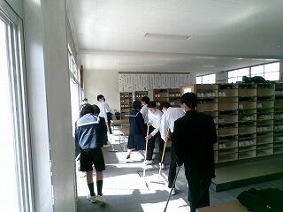 3月13日(月)午後、卒業を控えた3年生が、これまでお世話になった地域への恩返しとして、自分の地区の公民館清掃ボランティアを行いました。