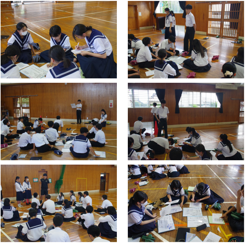 本日午後、学級専門委員会のあと、体育館に各クラスの専門委員長が集っての全校専門委員会が行われました。明日行われる生徒会選挙を受けて、後期の学級組織を決めていく流れになる前の専門委員会でした。どの委員会も今抱えている現状と課題をより良い方向にするため、具体策を考えていました。