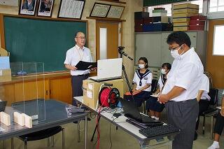新型コロナウイルス感染症対策のため、登校日はオンラインで行いました。生徒は各家庭から参加しました。