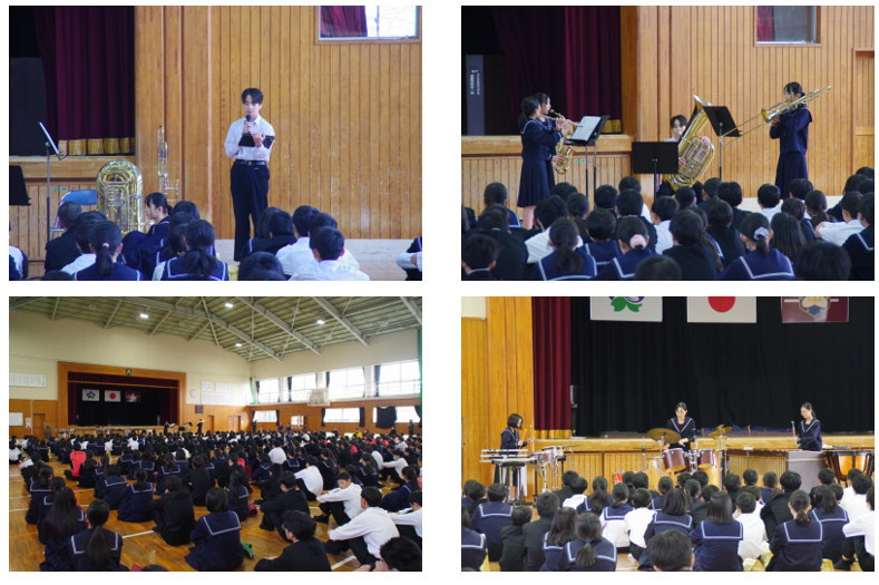 12/21(土曜)新富町文化会館で行われる標記のコンテストに向けた推戴式を行いました。本校吹奏楽部の代表として管楽四重奏、打楽器三重奏の部門に出場する皆さんのすばらしい演奏を聴かせていただきました。コンテスト当日も堂々とした演奏を響かせてくれるものと期待しております。
