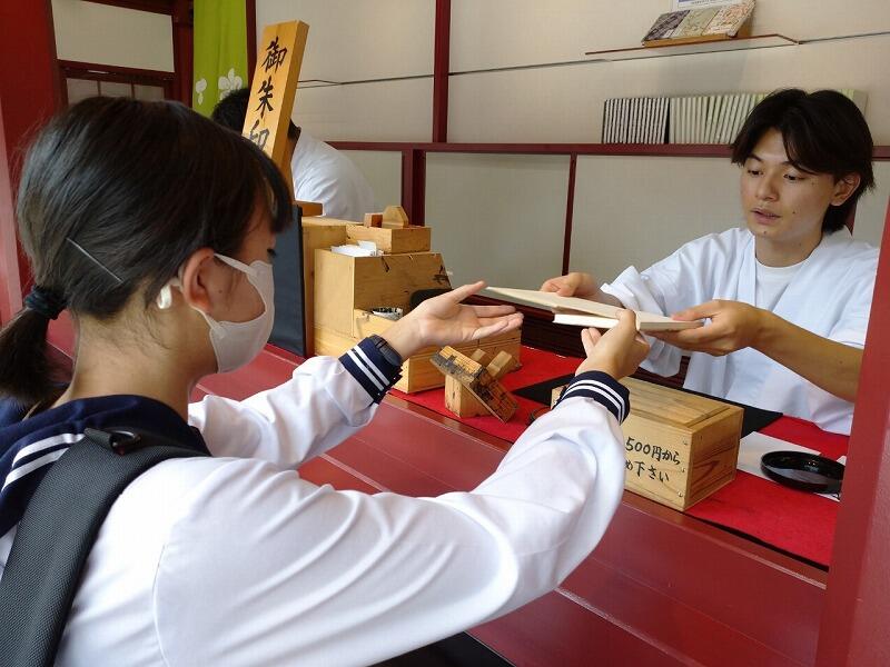 太宰府天満宮では、来年の受験に向けて学業成就のお守りを購入している生徒が多くいました。
