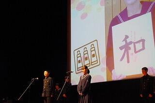 選考の結果、文化部門(団体)において、本校吹奏楽部が見事受賞。表彰式では、前部長の 藤井いろは さん(3年)が代表で賞状等を受け取りました。
