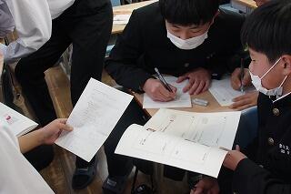 生徒の皆さんは、それぞれの業種についての説明や、将来へのアドバイスを聞き、まとめて行きました。