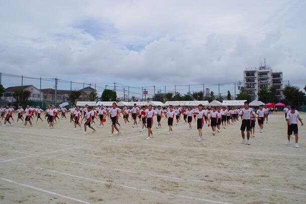 今年度初めて全校生徒が一堂に会しての活動でした。団顧問の先生方、団長、副団長、リーダーの皆さんが中心となり気合十分。