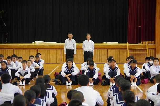 本日の5校時は、第43回宮崎県中学校秋季体育大会に向けた選手推戴式を行いました。