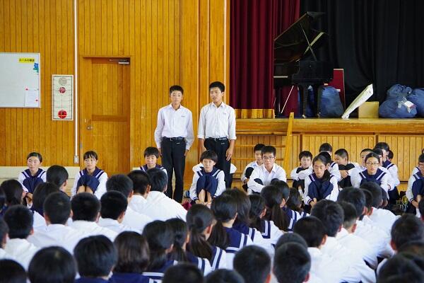 本日の5校時は、第42回宮崎県中学校秋季体育大会に向けた選手推戴式を行いました。