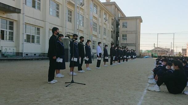 本日6校時は、生徒会役員退任式および新生徒会役員任命式を行いました。