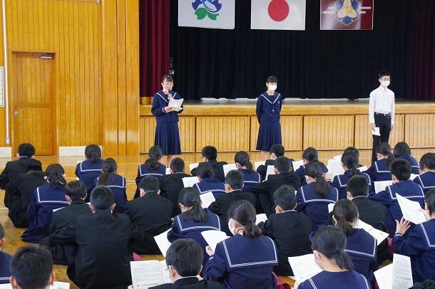対面式は生徒会長のあいさつから始まり、全校専門委員長による各委員会活動についての説明がありました。
