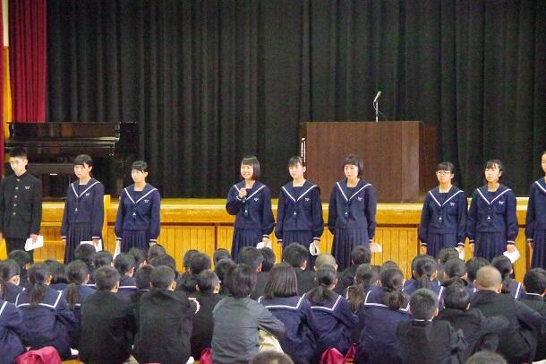 本日6校時、旧生徒会役員退任式、新生徒会役員任命式を行いました。