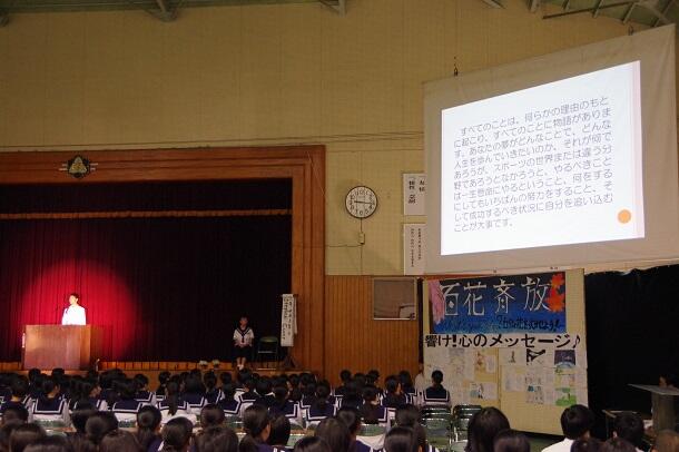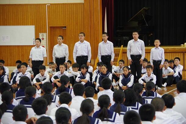 本日の5校時は、第43回宮崎県中学校秋季体育大会に向けた選手推戴式を行いました。