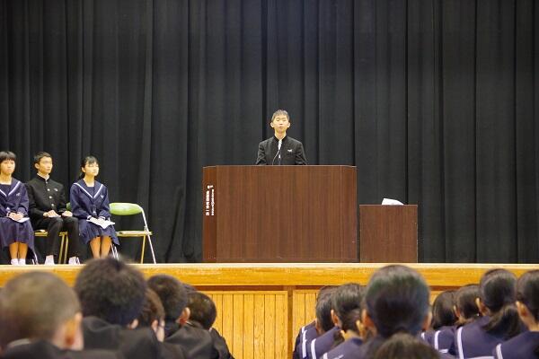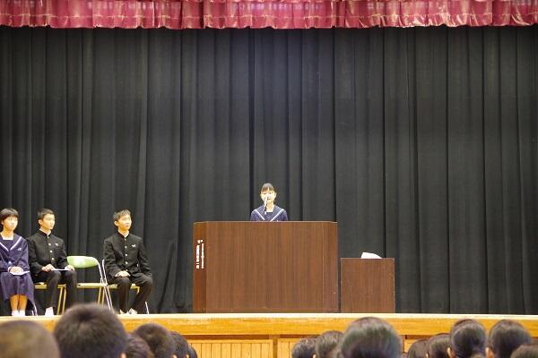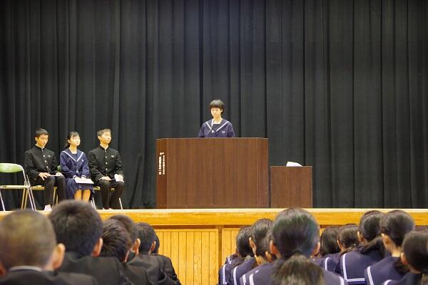 【各学年代表および生徒会役員代表による作文発表】