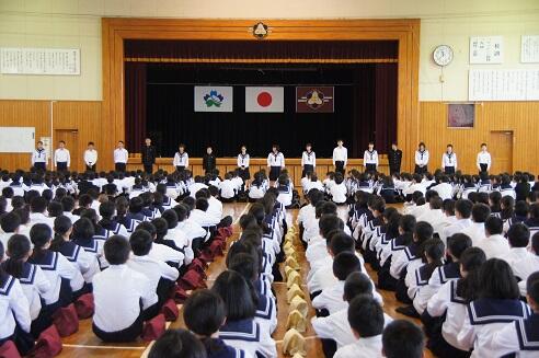 本日4校時は、部活動集会を行いました。まず、各部のキャプテンが5月の目標を発表した後、部活動の意義や容儀面の大切さについて学校から話をしました。5月22日には容儀検査を予定しています。日頃から時を守り、場を清め、礼を正して、感謝の気持ちをもって学校生活や部活動に励んでいきましょう。