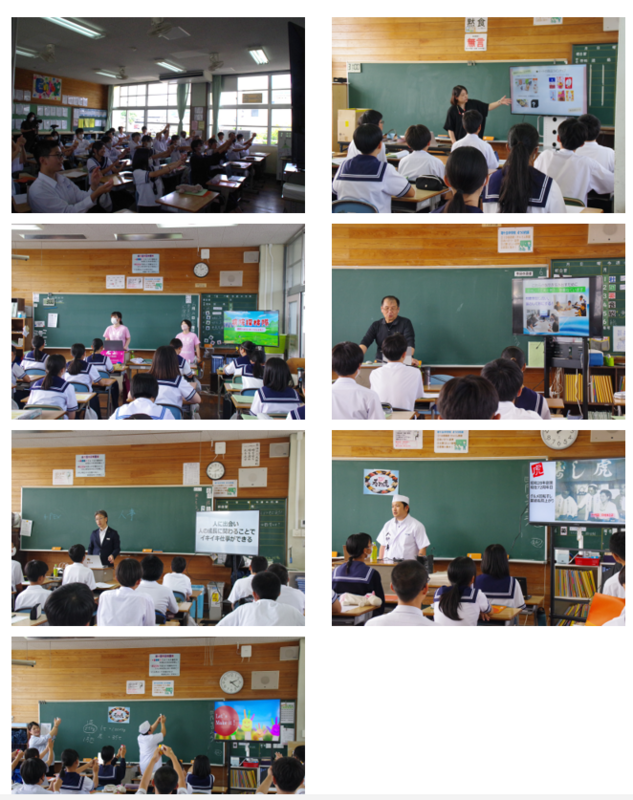 の6企業の方々におこしいただき、事業内容の説明をはじめ、仕事のやりがいやチームで仕事をすることの意義、働く上で大切にしていることなど、ふだんの学校の授業ではなかなか学ぶことができないその道のプロのお話を直接お聞きし、質問ができる貴重な機会となりました。2学期には職場体験学習を予定している2年生、今回の意見交換会を生かして、しっかりと準備していってほしいと思います。