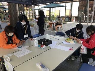 生徒の皆さんは、日頃から「ありがとう」と思ったことを記入して作り上げる「ありがとうの木」やシトラスリボンプロジェクトを行い、訪れた方々に丁寧に作り方を教えていました。
