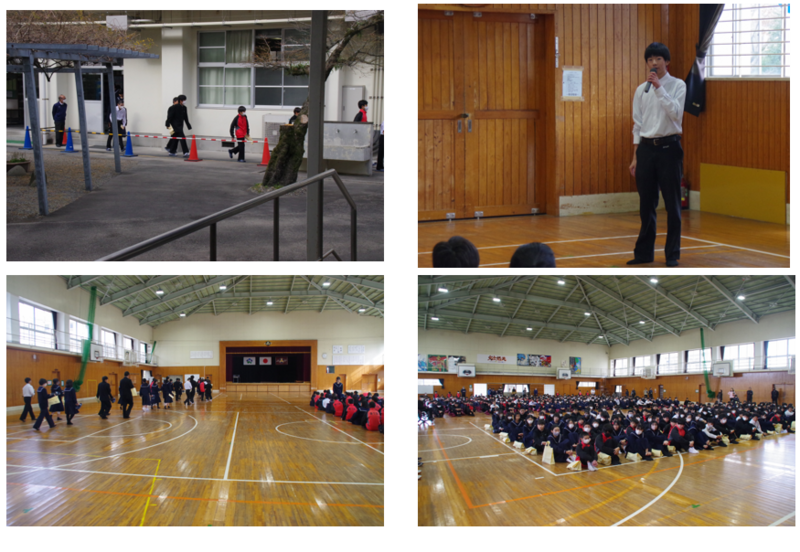 本日の5校時は集団行動を行いました。生徒会長の岩谷さんの全校放送の後、全校生徒が無言で体育館に整列集合しました。明日は命の大切さを考える日として妻ケ丘中人権宣言を唱和します。