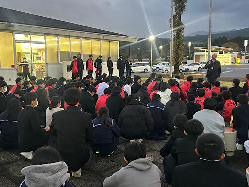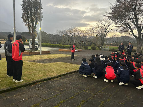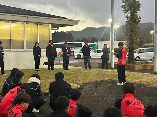 霧島パーキングエリアで修学旅行解散式を行いました。