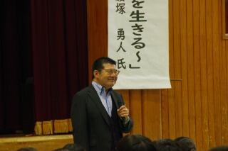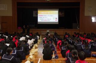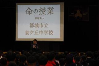 本日の午後、体育館で全校生徒を対象に、命を大切にする授業が行われました。生徒は事前学習で腰塚先生の壮絶な人生について学び、今日の講演の日を迎えました。「命の授業~ドリー夢メーカーと今を生きる~」の演題で、講師の腰塚勇人さんから熱い熱いご講話をいただきました。「助けてと思う心は弱くない」、「誰かのドリー夢メーカーになれていますか」、そして「誰かのドリー夢キラーになっていませんか」という投げかけは、私一人一人の胸に響くお話でした。「命が喜ぶ幸動~5つの誓い~」、「人生縁JOY」についてのお話もありました。講演途中の2時46分には、東日本大震災で亡くなられた方々を偲んで、全校生徒で黙祷を行いました。講演を通して、命について考えるこのような機会をつくっていただいた都城市教委の皆さん、本当にありがとうございました。