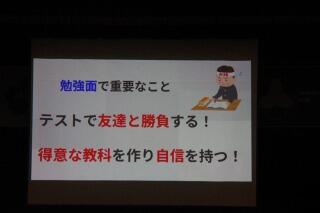本日の5時間目の総合的な学習の時間は、1・2年生が体育館に集まり、先輩の声を聞く会(進路公開)が行われました。高校への進路を決めた3年生が自作のプレゼン資料を用いて、将来の夢や高校受験について、話をしてくれました。先輩達の真摯なアドバイスに、後輩達も真剣に耳を傾けていました。中学校生活はあっという間に時が流れます。自らの将来に向けて、生徒一人一人が自らを見つめ直すよき機会となりました。発表してくれた3年生の皆さん、ありがとうございました。