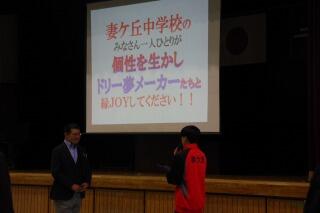 本日、妻ケ丘地区公民館で、妻ケ丘地区青少年意見発表会が行われました。3年生のアブルハサンサキナさんの意見発表があり、続いて岩谷尚憲さんの善行生徒表彰もありました。今回は生徒会執行部の6名も参加しました。地区の皆さんに妻ケ丘中学校の頑張っている姿を知っていただく良い機会となりました