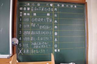 入試を終えた3年生は、卒業式に向けて、式練習に励んでいます。そして、本日の午後、3年生はこれまで支えてくれた地域の皆さんに感謝の気持ちを込めて、各地区に分かれて公民館清掃を行いました。公民館長さんを始め、各公民館の方々が中学生の活動を支えてくださいました。毎年伝統として続いている公民館清掃で汗を流した3年生たちは、充実感にあふれた顔をしていました。