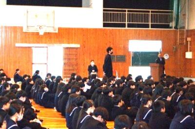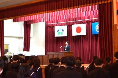 終業式では、4名の生徒が2学期を振り返って発表し、校長先生より厳しく