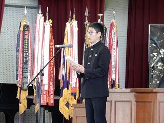 新入生代表誓いのことばを野元結莉乃さんが、在校生代表歓迎の言葉を種子田峻聖さんが堂々と述べました。