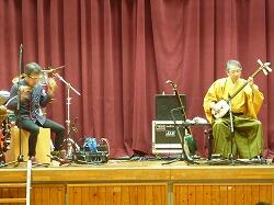 「温故知新」三味線とパーカッションのコラボの公演でした。新型コロナ感染対策のため、1・2年と3年が分かれ、2回公演