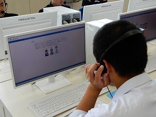 調査ではヘッドセットを使って行いましたが、生徒も初めてのことで、慣れない試験に始めは戸惑っているようでした。