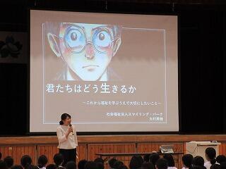 全校生徒を対象に行われた創心学Ⅰでは、「福祉教育講演」として、社会福祉法人住まいリング・パークの大村美穂様をお迎えして講演をしていただきました。とても興味深い話で、生徒達も一生懸命話に聞き入っていました。