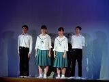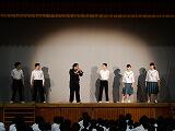 第1部は生徒会役員による、中学校での生活、そして各委員会の活動についての説明でした。プレゼンテーションや劇で紹介しており、とてもわかりやすい説明でした。