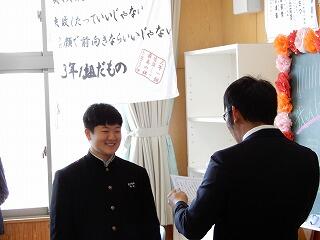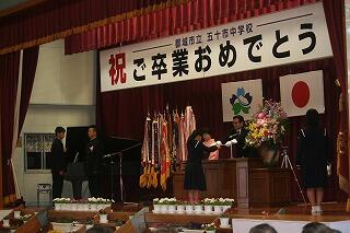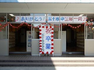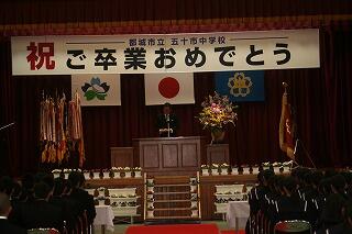 これまで学校の中心として五十市中学校を盛り上げてくれていた3年生が卒業しました。学校行事では史上最高と言っていいほどの素晴らしいものを作り上げました。また、生徒会スローガンにもあるように「普段を誇れる五十市中」という言葉通り、日々の授業、生活をしっかりとやり、後輩の見本となってくれた3年生。この日も、素晴らしい態度で生徒は臨み、感動の卒業式となりました。頑張ってきたからこその涙がたくさん流れました。これからの卒業生の未来に幸多からんことを、心よりお祈り申し上げます。